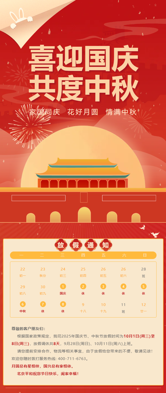 但愿人長(zhǎng)久,佳節(jié)共團(tuán)圓 | 北京平和2025國(guó)慶、中秋放假通知