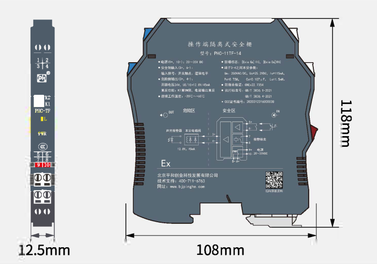 外形尺寸 | 厚12.5mm×寬108mm×高118mm |