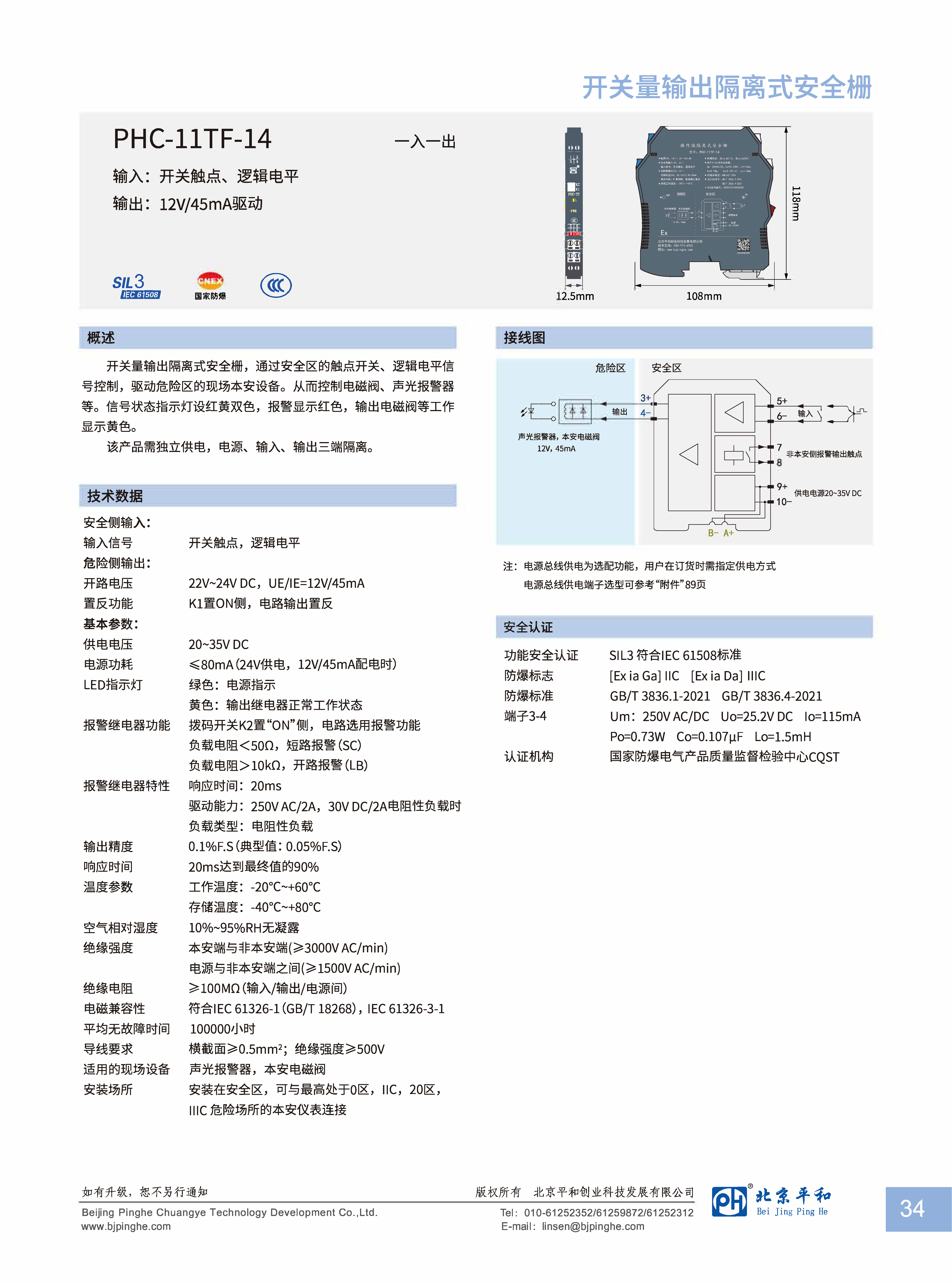 開關(guān)量輸出隔離式安全柵,通過安全區(qū)的觸點開關(guān)、邏輯電平信號控制,驅(qū)動危險區(qū)的現(xiàn)場本安設(shè)備。從而控制電磁閥、聲光報警器等。信號狀態(tài)指示燈設(shè)紅黃雙色,報警顯示紅色,輸出電磁閥等工作顯示黃色。