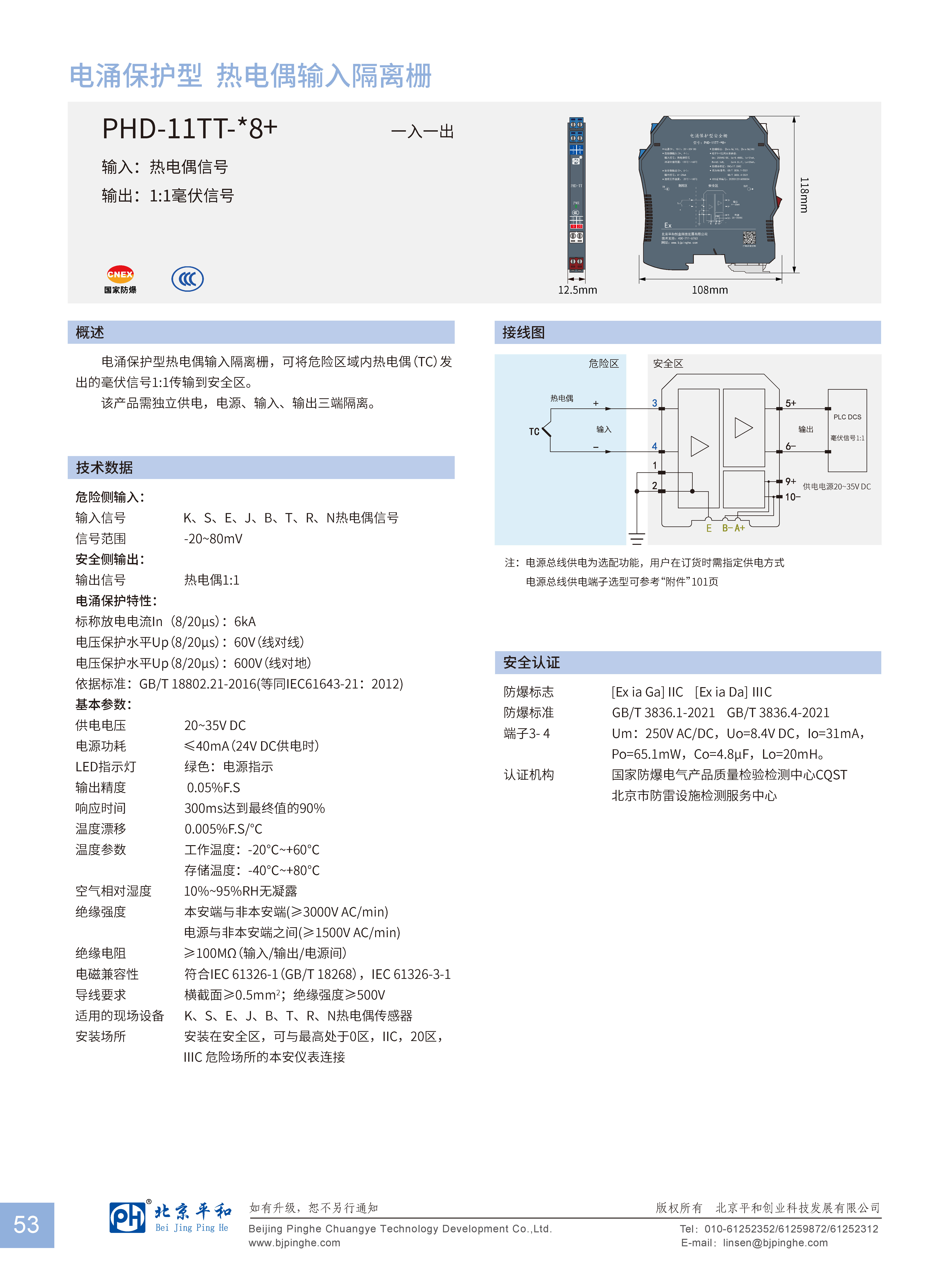 電涌保護(hù)型熱電偶輸入隔離柵,可將危險(xiǎn)區(qū)域內(nèi)熱電偶(TC)發(fā)出的毫伏信號(hào)1:1隔離傳輸?shù)桨踩珔^(qū)。