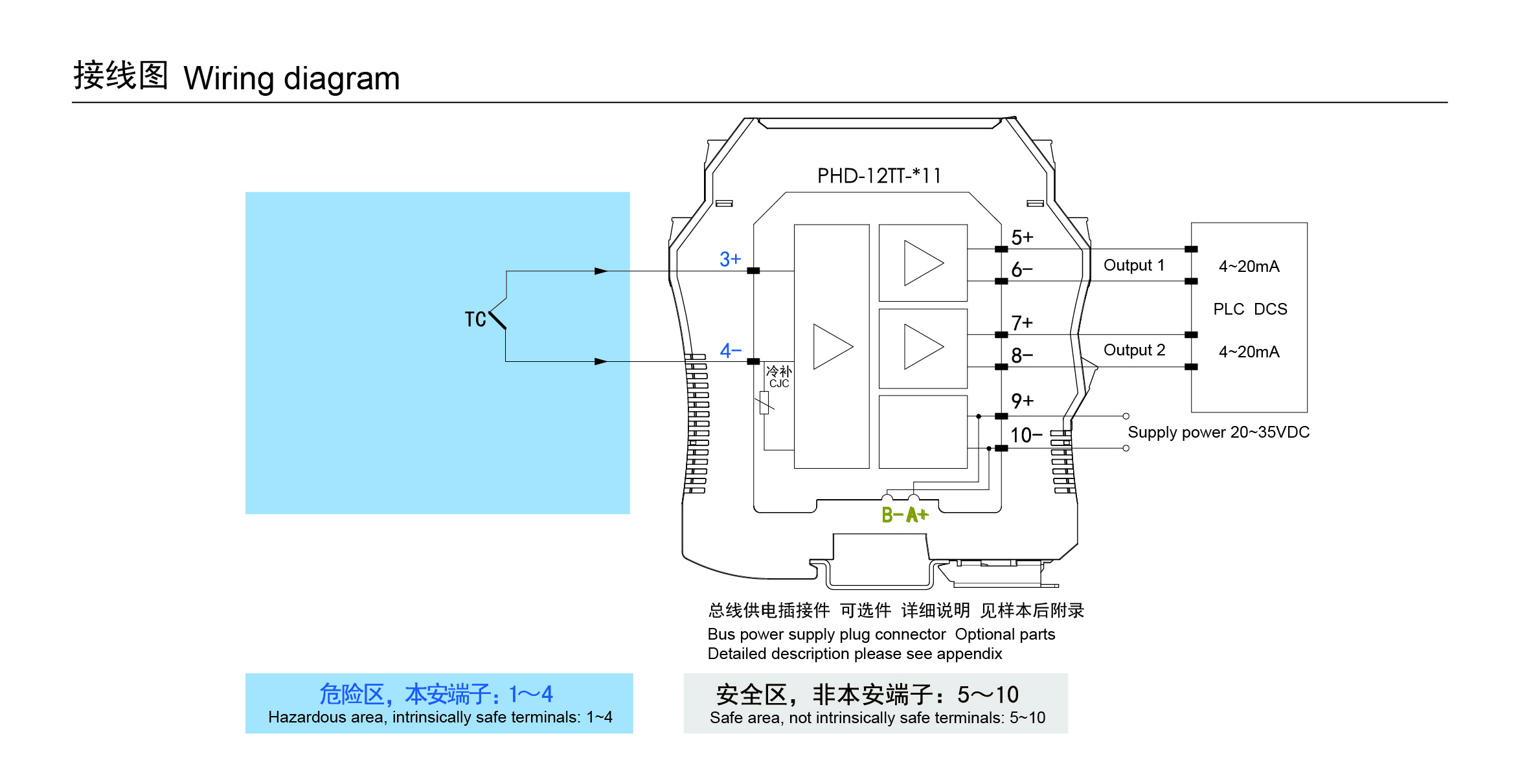 熱電偶輸入隔離式安全柵,可將危險區(qū)域內熱電偶(TC)信號隔離轉換為4-20mA電流信號,輸出到安全區(qū)。此安全柵內置冷端補償,可智能組態(tài),熱電偶的實際量程范圍可通過計算機軟件進行設定。具有斷線報警和超出量程范圍報警功能。