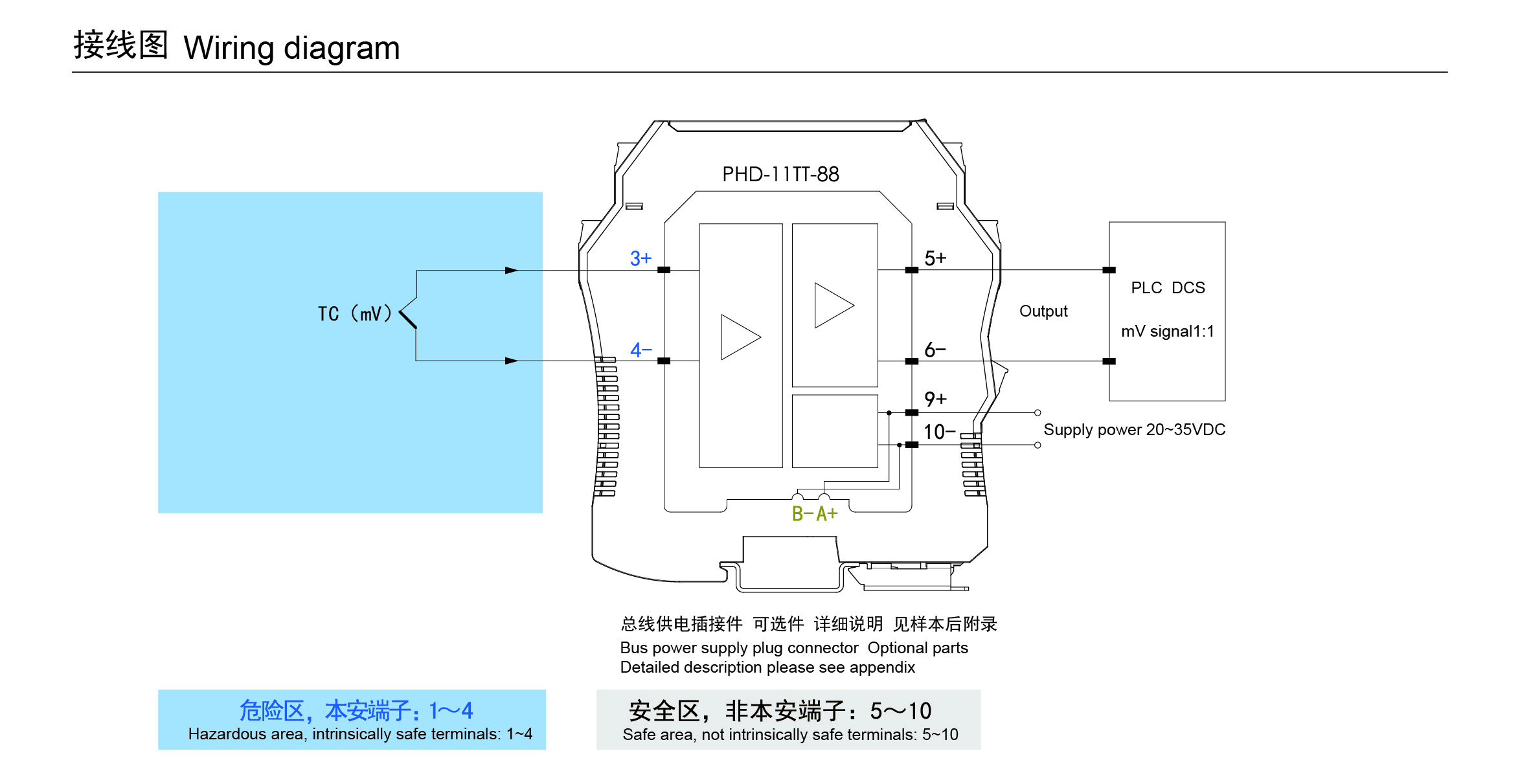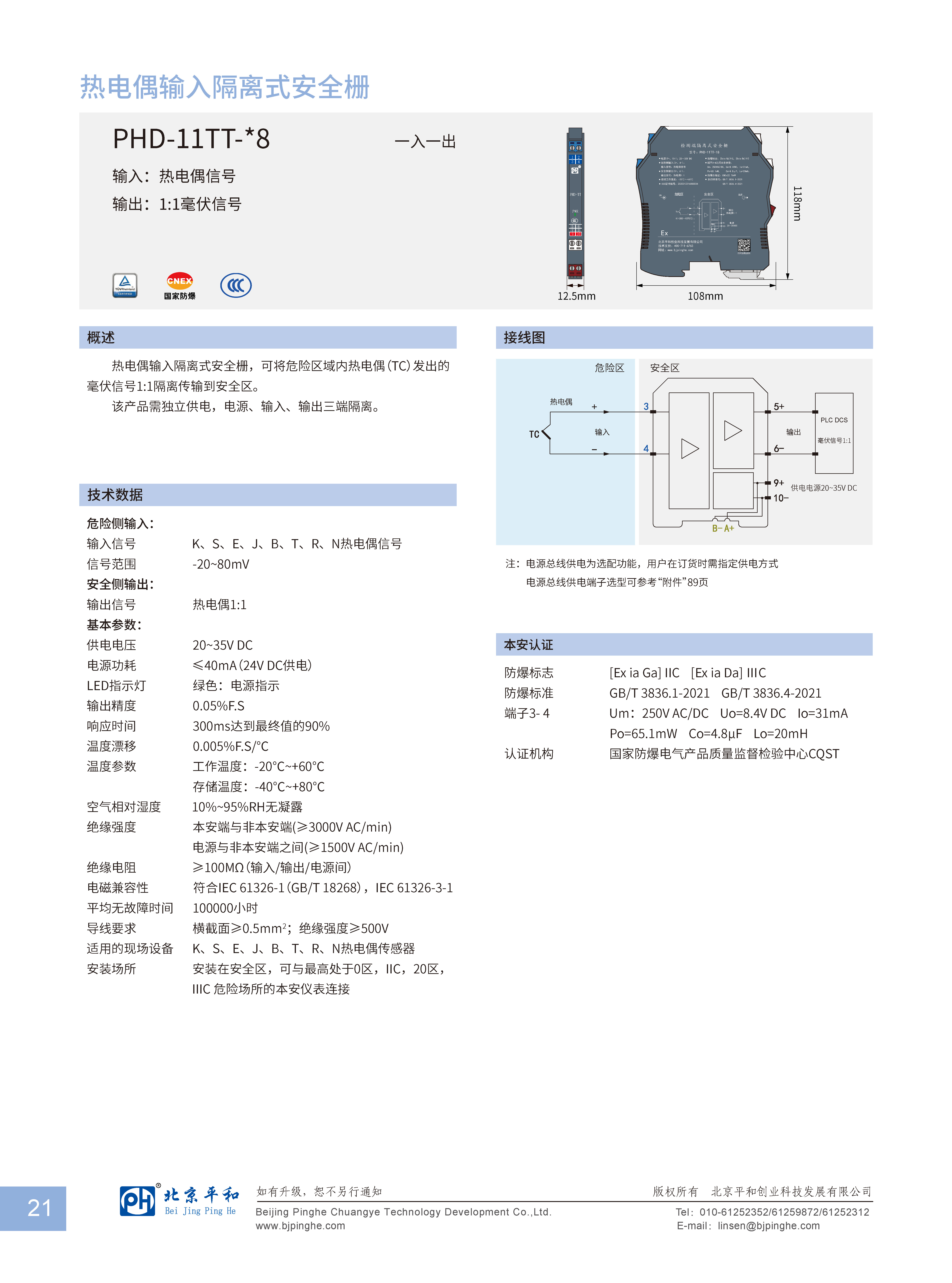 熱電偶輸入隔離式安全柵,可將危險(xiǎn)區(qū)域內(nèi)熱電偶(TC)發(fā)出的毫伏信號(hào)1:1隔離傳輸?shù)桨踩珔^(qū)。