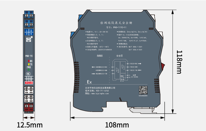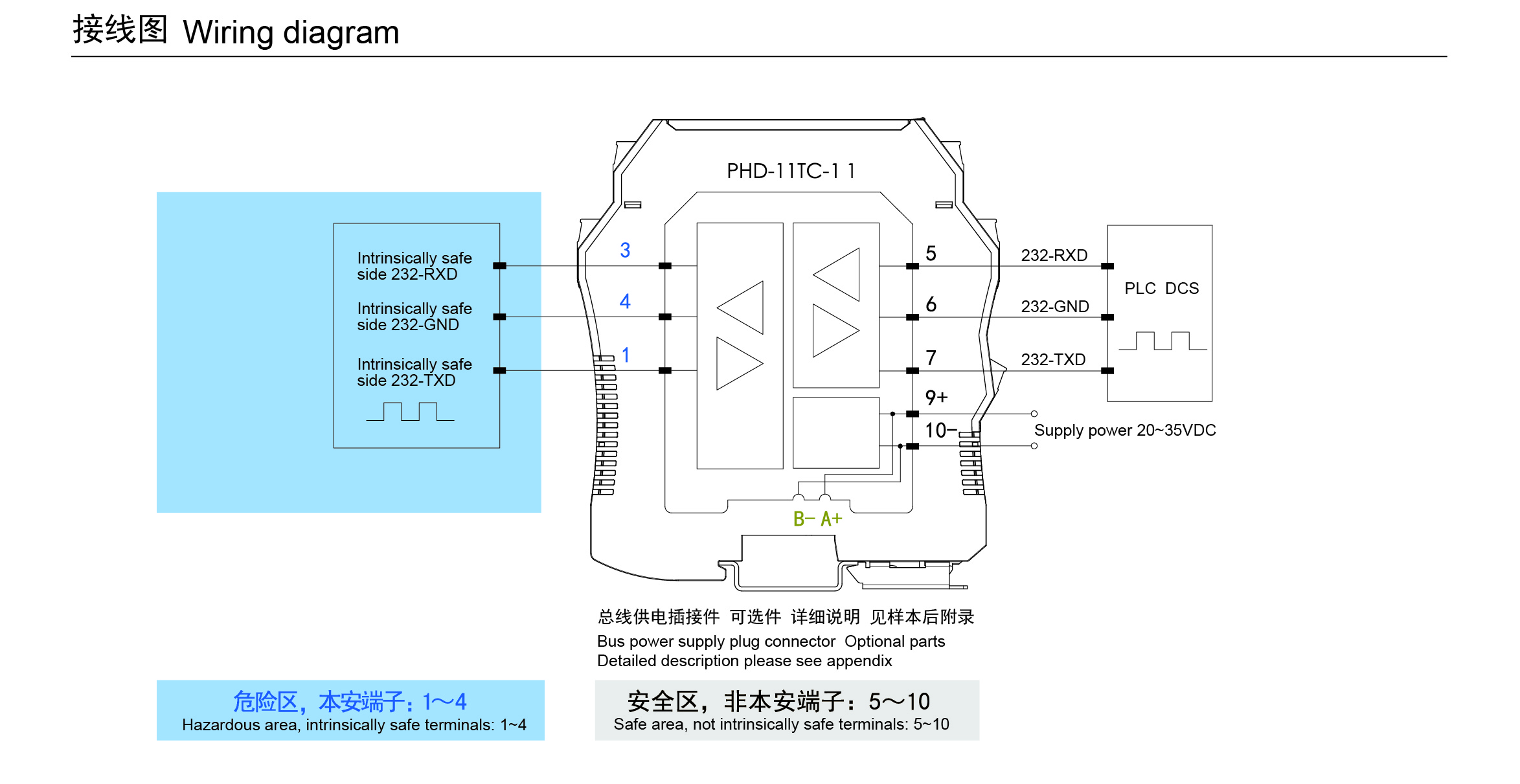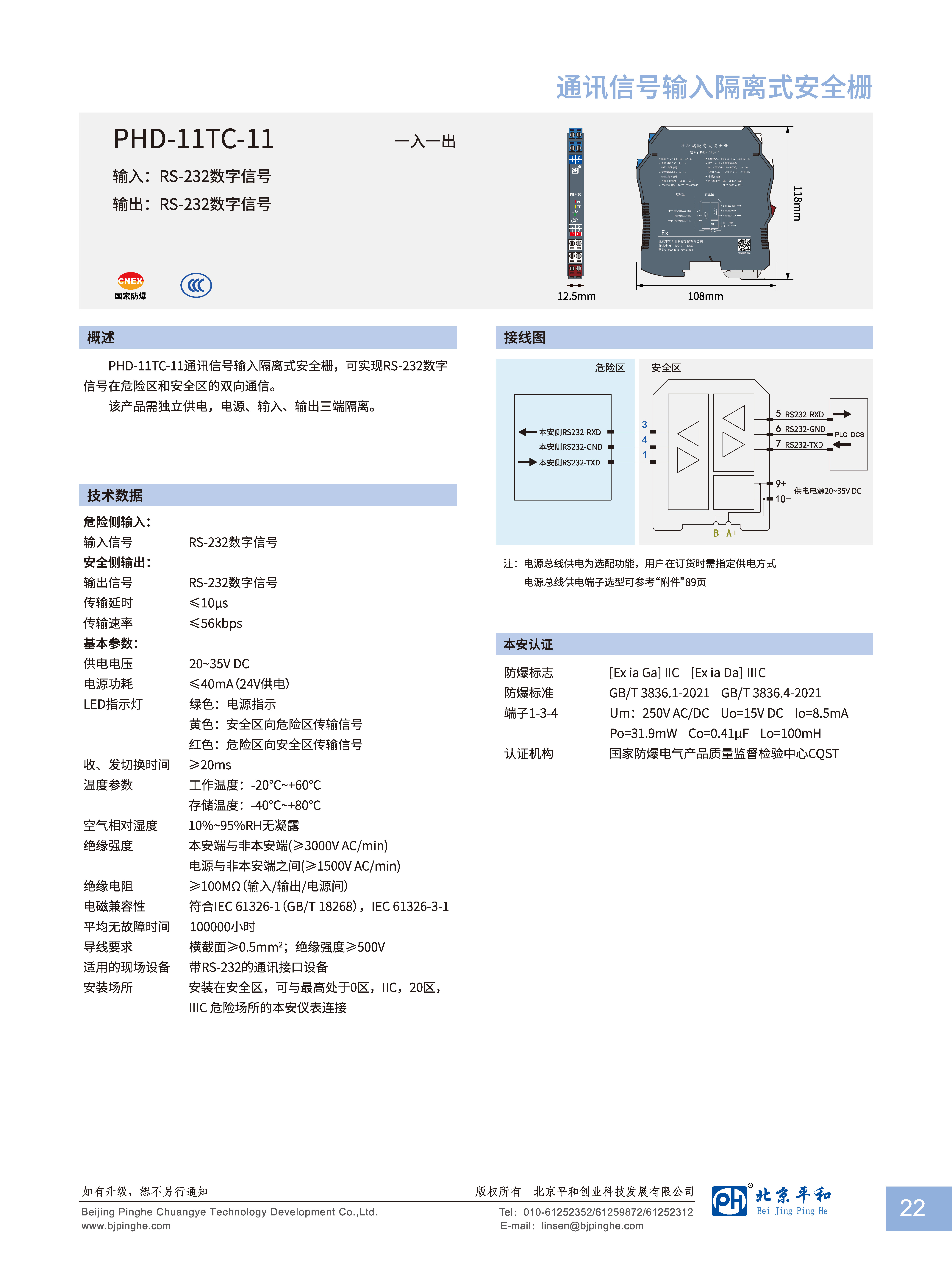 PHD-11TC-11通訊信號輸入隔離式安全柵,可實現(xiàn)RS-232數字信號在危險區(qū)和安全區(qū)的雙向通信。