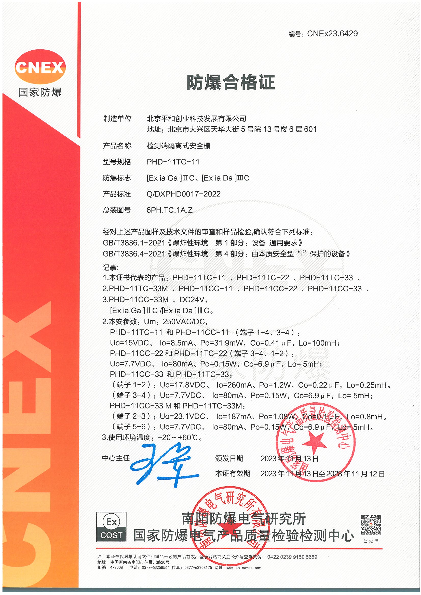 認證機構 | 國家防爆電氣產品質量監(jiān)督檢驗中心CQST認證 |