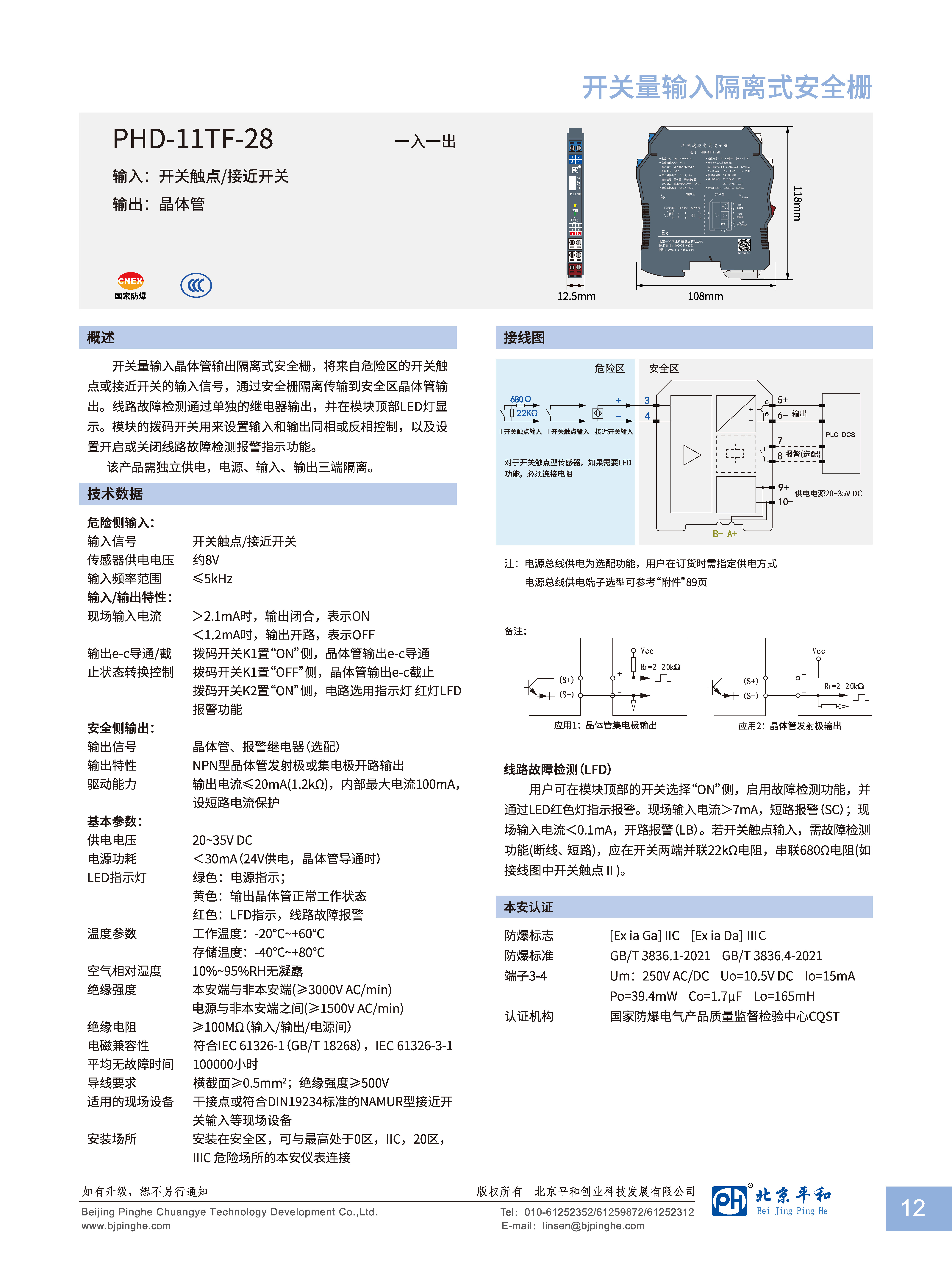 開關(guān)量輸入晶體管輸出隔離式安全柵,將來自危險區(qū)的開關(guān)觸點(diǎn)或接近開關(guān)的輸入信號,通過安全柵隔離傳輸?shù)桨踩珔^(qū)晶體管輸出。線路故障檢測功能在模塊頂部LED燈顯示。模塊的撥碼開關(guān)用來設(shè)置輸入和輸出同相或反相控制,以及設(shè)置開啟或關(guān)閉線路故障檢測報警指示功能。