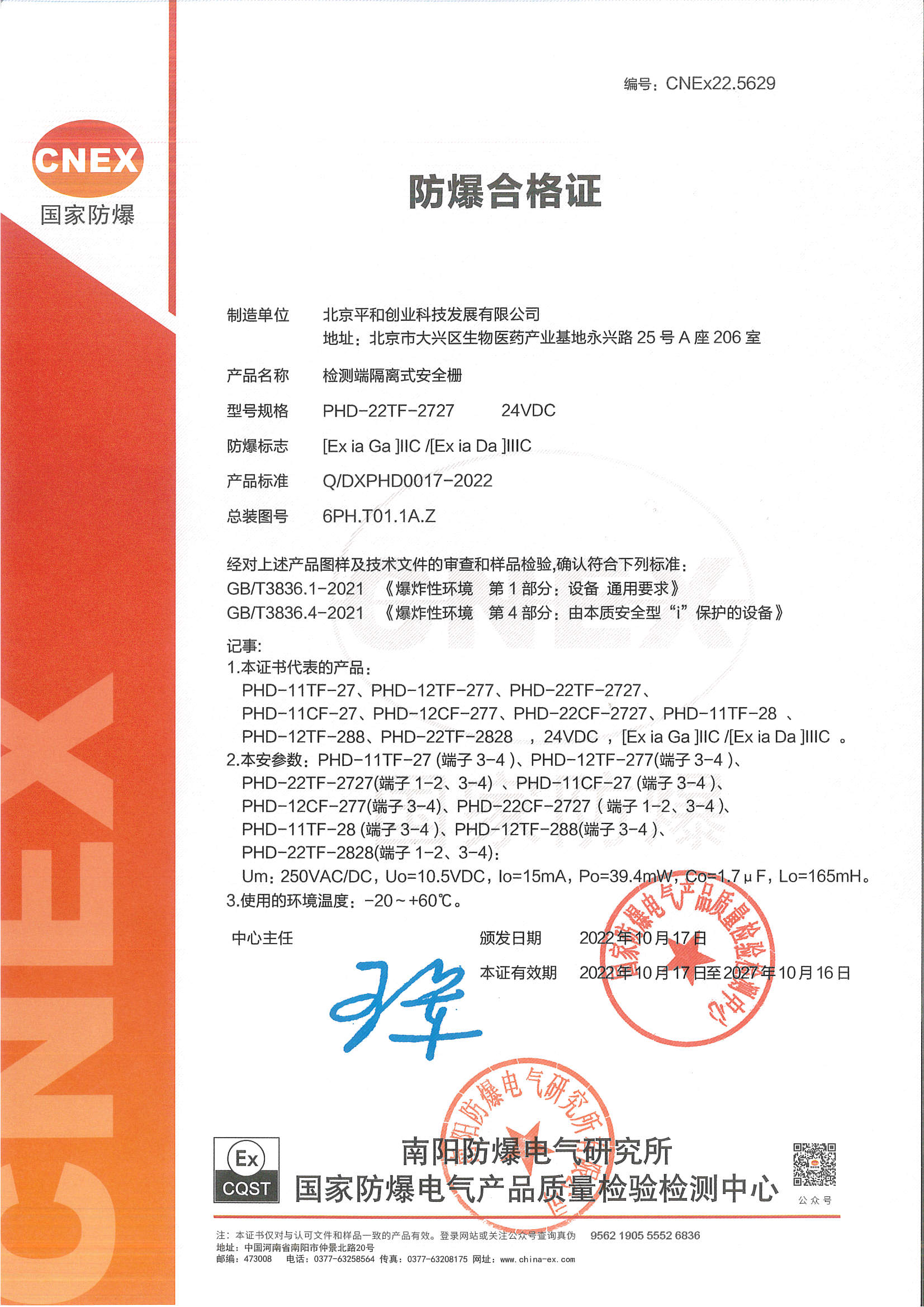 認證機構(gòu) | 國家防爆電氣產(chǎn)品質(zhì)量監(jiān)督檢驗中心CQST認證 |