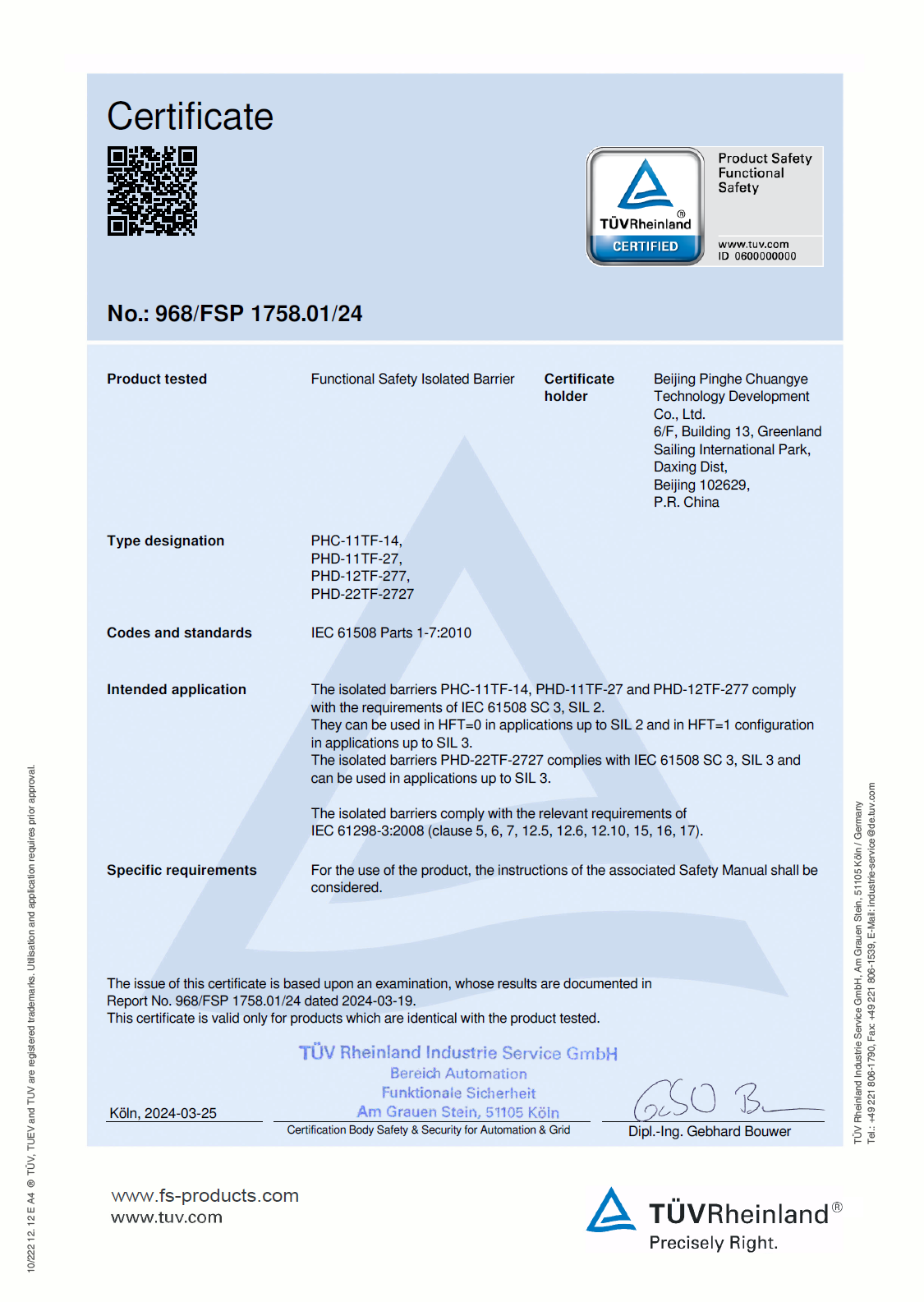 功能安全認證 | S1L2,符合IEC 61508 EN 61511標準 |