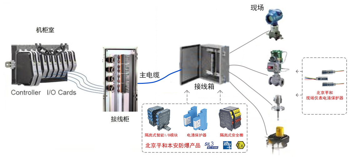 流程工業(yè)控制系統(tǒng)技術(shù)的前進(jìn)腳步不斷前進(jìn),繼開發(fā)了現(xiàn)場總線技術(shù)后,控制系統(tǒng)廠商開發(fā)了現(xiàn)場通用IO技術(shù)。該技術(shù)的思路是:既然用戶仍然選擇4-20mA/開關(guān)信號為主的模擬信號,那就把位于IO系統(tǒng)柜里面的IO卡件和通信模塊搬到現(xiàn)場接線箱里,首先實現(xiàn)現(xiàn)場接線箱到機(jī)柜室的數(shù)字化傳輸。為了增強(qiáng)靈活性,現(xiàn)場通用IO技術(shù)把IO卡件設(shè)計成適應(yīng)大部分信號的通用IO卡件。