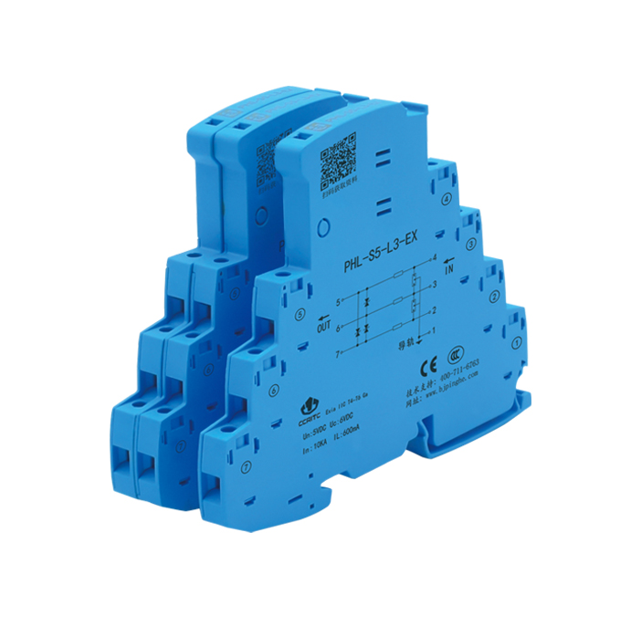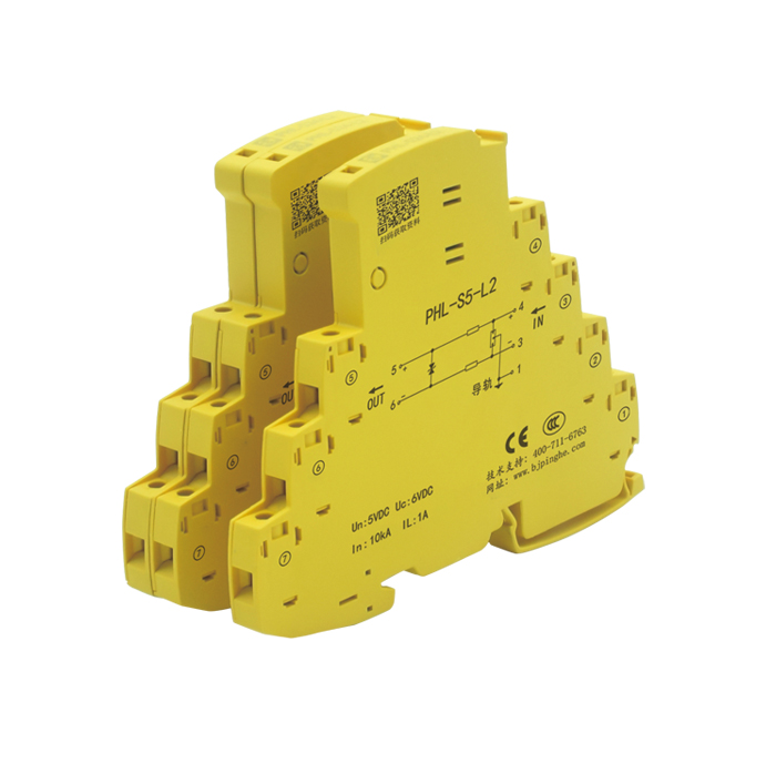 PHL-S系列SPD主要用于保護(hù)以二線制、三線制方式連接的變送器、開關(guān)、頻率信號、通信設(shè)備、熱電阻、熱電偶等現(xiàn)場設(shè)備以及控制室I/O、DCS、PLC等設(shè)備,使其免受雷擊電涌沖擊電壓或操作過電壓的損害。主要特點有: 1.頂部具有狀態(tài)報警顯示功能; 2.7mm超薄,節(jié)省空間; 3.高帶寬,插入損耗低,適用于各類信號;