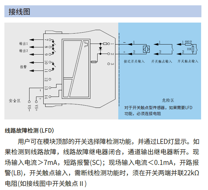 現(xiàn)場輸入電流>7mA,短路報警(SC),現(xiàn)場輸入電流<0.1mA,開路報警(LB)