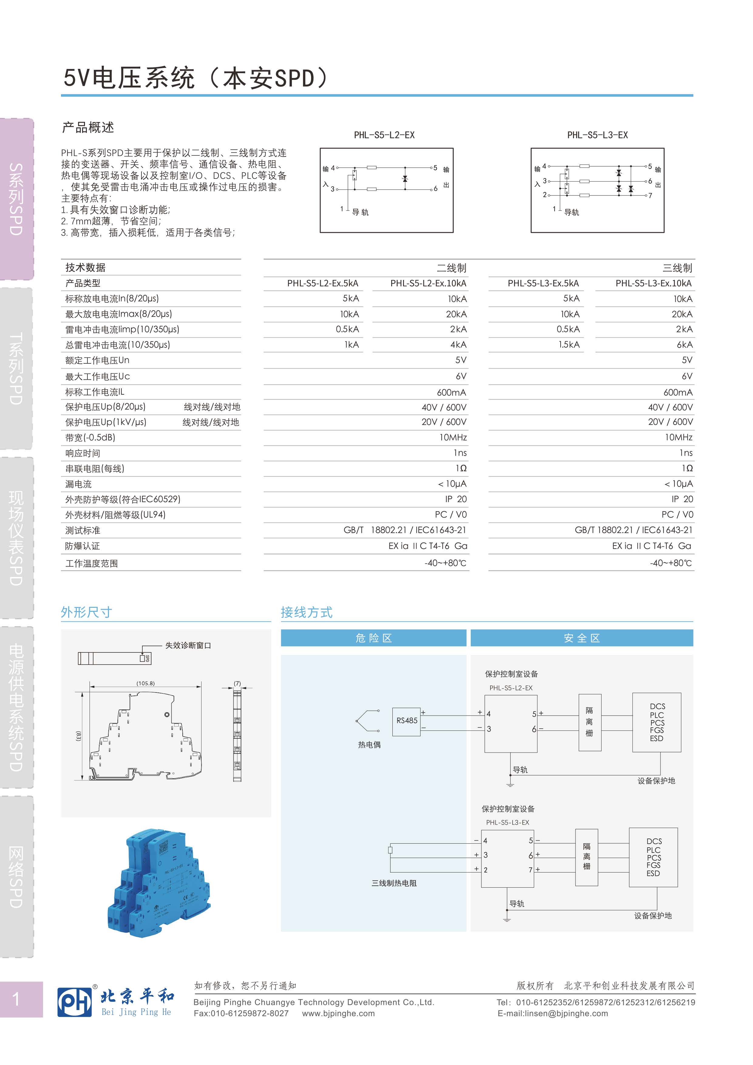 PHL-S系列SPD主要用于保護以二線制、三線制方式連接的變送器、開關(guān)、頻率信號、通信設(shè)備、熱電阻、熱電偶等現(xiàn)場設(shè)備以及控制室I/O、DCS、PLC等設(shè)備,使其免受雷擊電涌沖擊電壓或操作過電壓的損害。主要特點有: