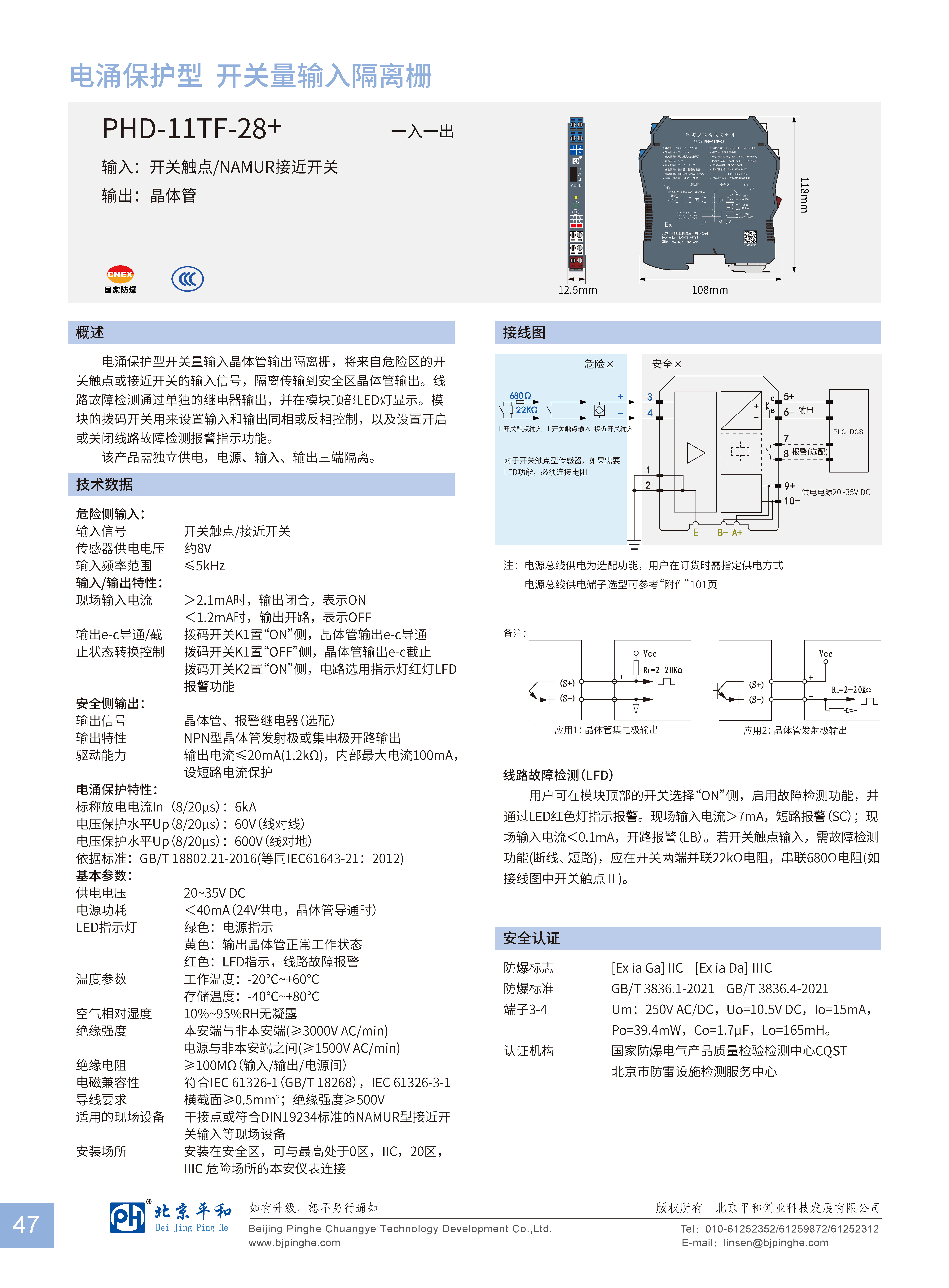 電涌保護(hù)型開關(guān)量輸入晶體管輸出隔離柵,將來自危險(xiǎn)區(qū)的開關(guān)觸點(diǎn)或接近開關(guān)的輸入信號(hào),隔離傳輸?shù)桨踩珔^(qū)晶體管輸出。線路故障檢測通過單獨(dú)的繼電器輸出,并在模塊頂部LED燈顯示。模塊的撥碼開關(guān)用來設(shè)置輸入和輸出同相或反相控制,以及設(shè)置開啟或關(guān)閉線路故障檢測報(bào)警指示功能。
