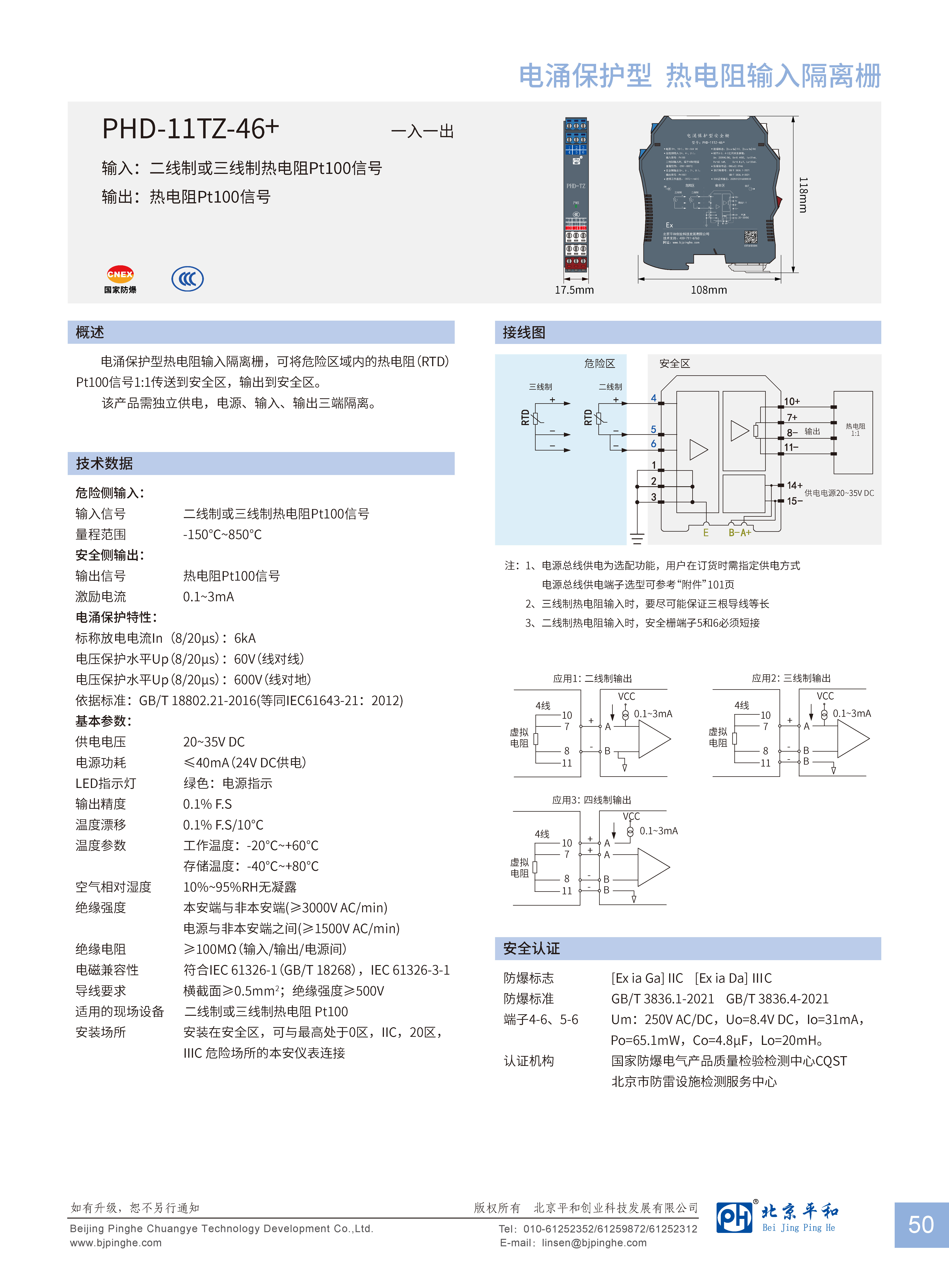 電涌保護(hù)型熱電阻輸入隔離柵,可將危險(xiǎn)區(qū)域內(nèi)的二線制或三線制熱電阻(RTD)Pt100信號(hào)1:1傳送到安全區(qū)。