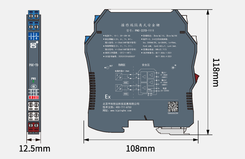 外形尺寸 | 厚12.5mm×寬108mm×高118mm |
