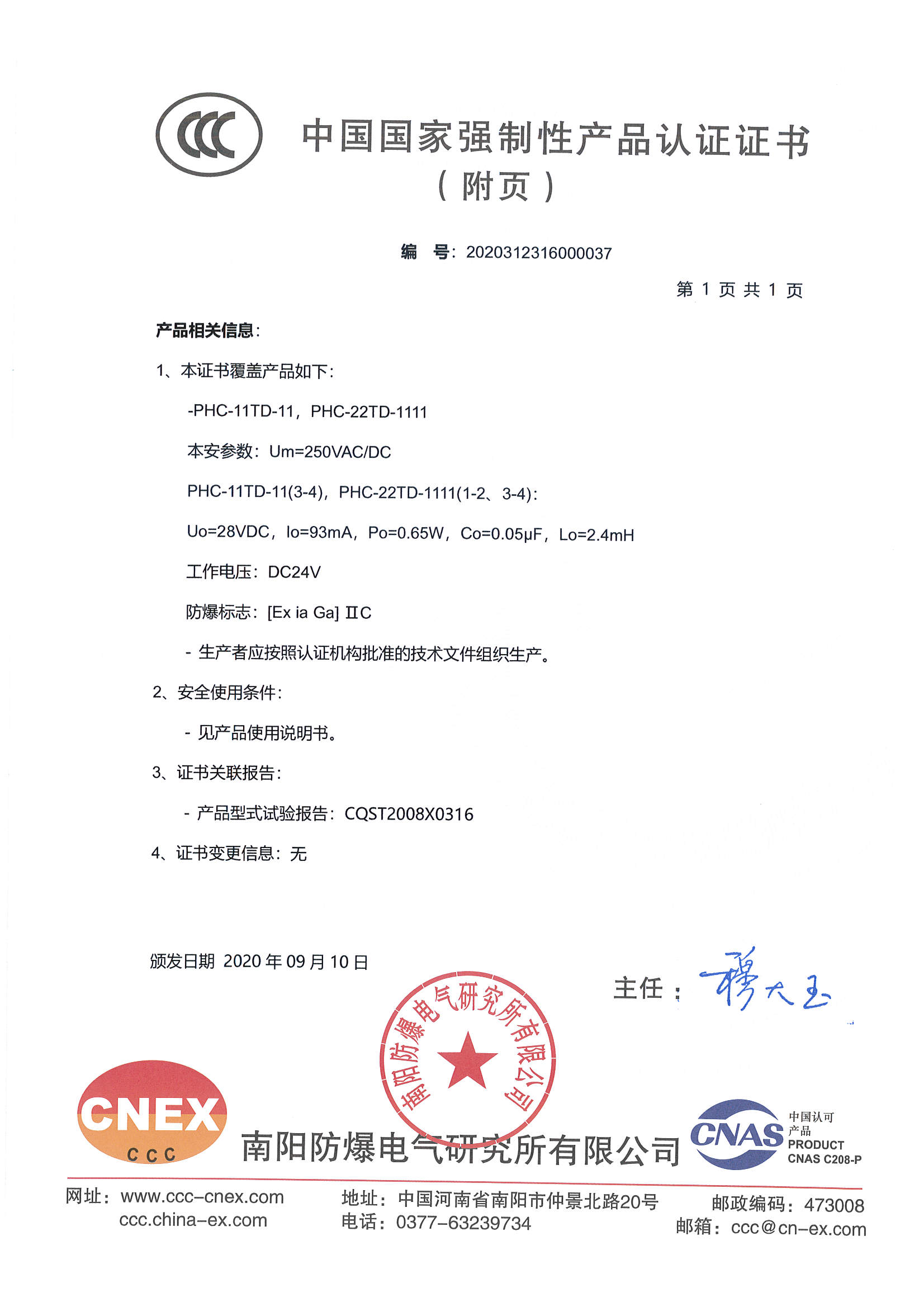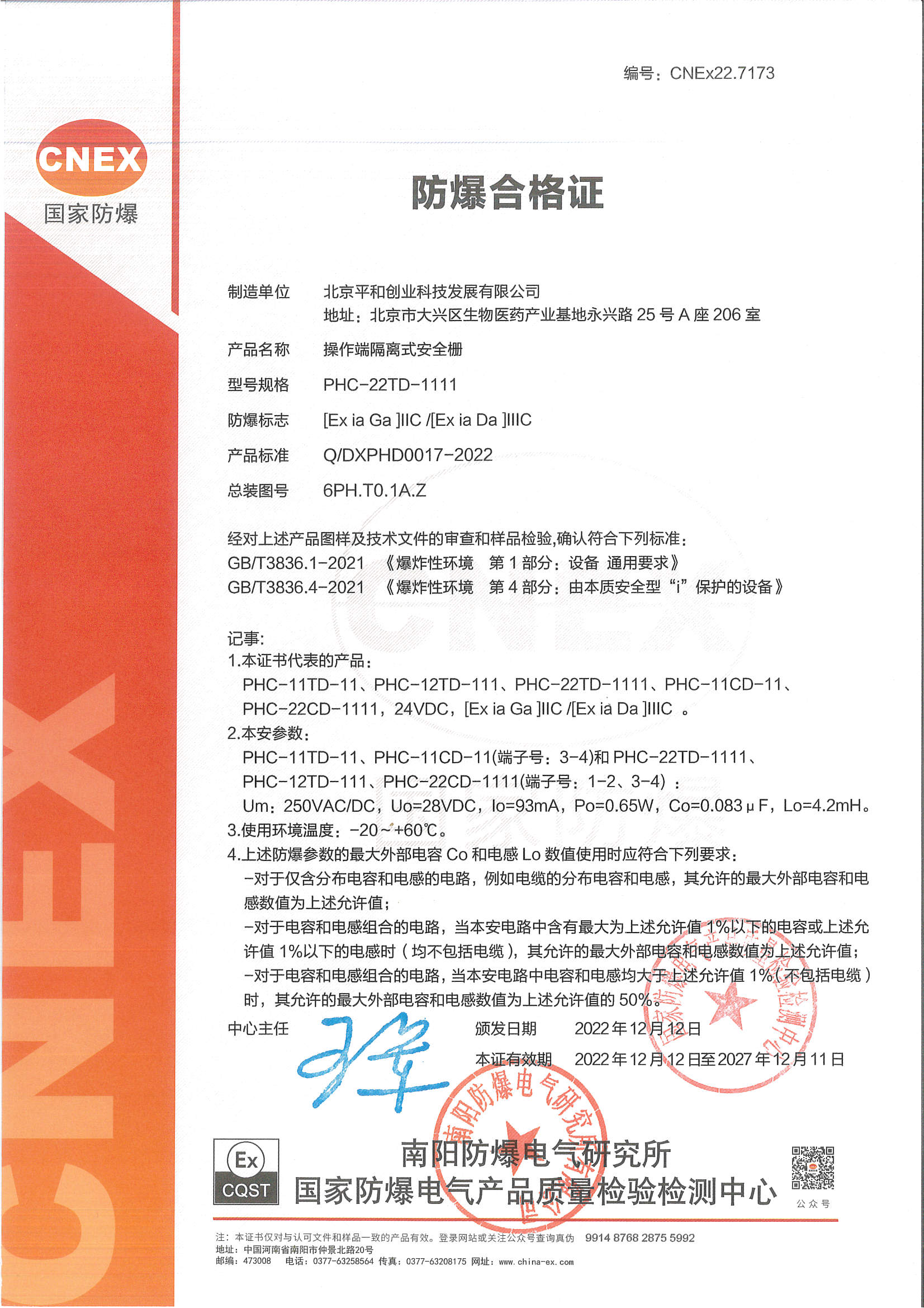 認(rèn)證機(jī)構(gòu) | 國家防爆電氣產(chǎn)品質(zhì)量監(jiān)督檢驗(yàn)中心CQST認(rèn)證 |