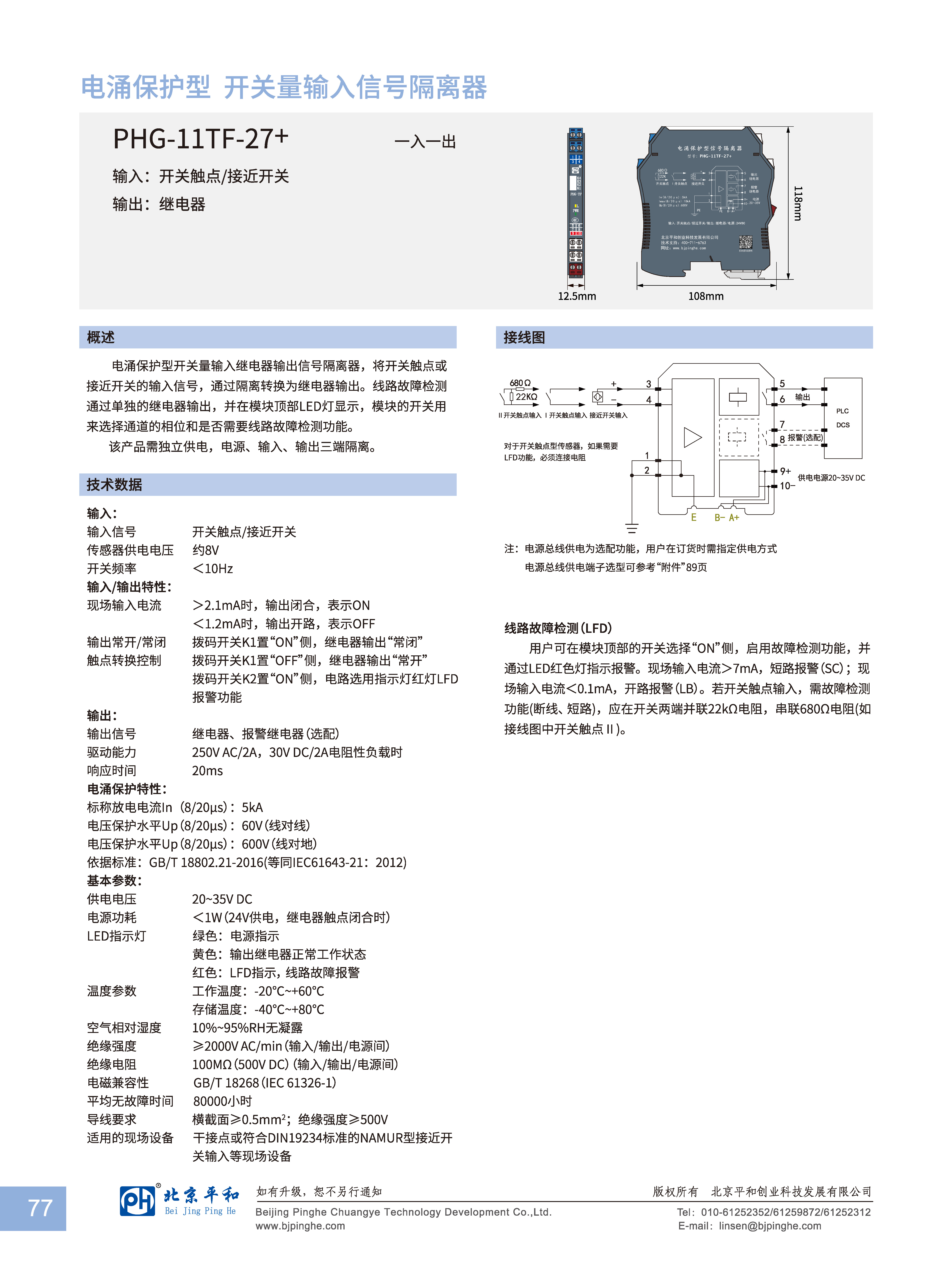 電涌保護型開關(guān)量輸入繼電器輸出信號隔離器,將開關(guān)觸點或接近開關(guān)的輸入信號,通過隔離轉(zhuǎn)換為繼電器輸出。線路故障檢測通過單獨的繼電器輸出,并在模塊頂部LED燈顯示,模塊的開關(guān)用來選擇通道的相位和是否需要線路故障檢測功能。