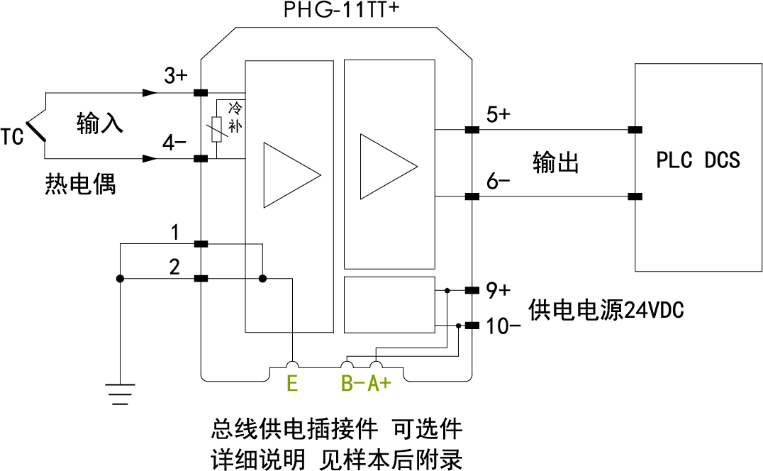 電涌保護型熱電偶輸入溫度變送器,可將熱電偶(TC)發(fā)出的直流信號隔離轉(zhuǎn)換為直流信號,此產(chǎn)品內(nèi)置冷端補償功能,可智能組態(tài),熱電偶的實際量程范圍可通過計算機軟件進行設定。具有斷線報警功能和超出量程范圍報警功能。