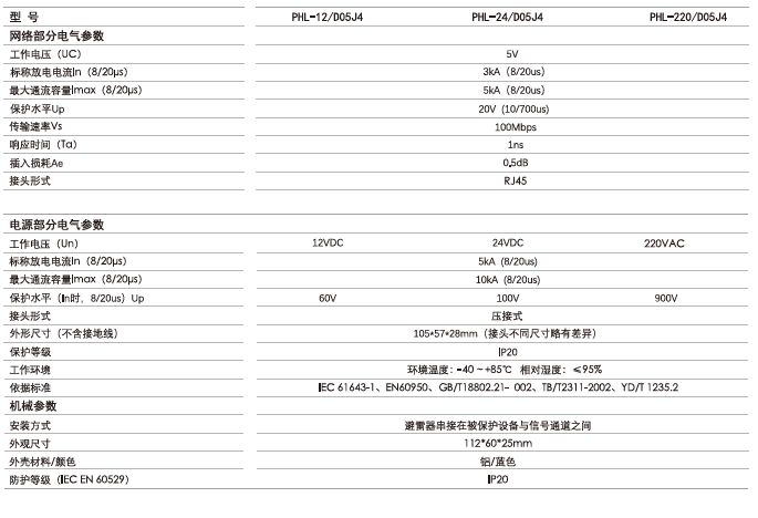 PHL-220/D05J4 電源網(wǎng)絡(luò)二合一監(jiān)控專用防雷器