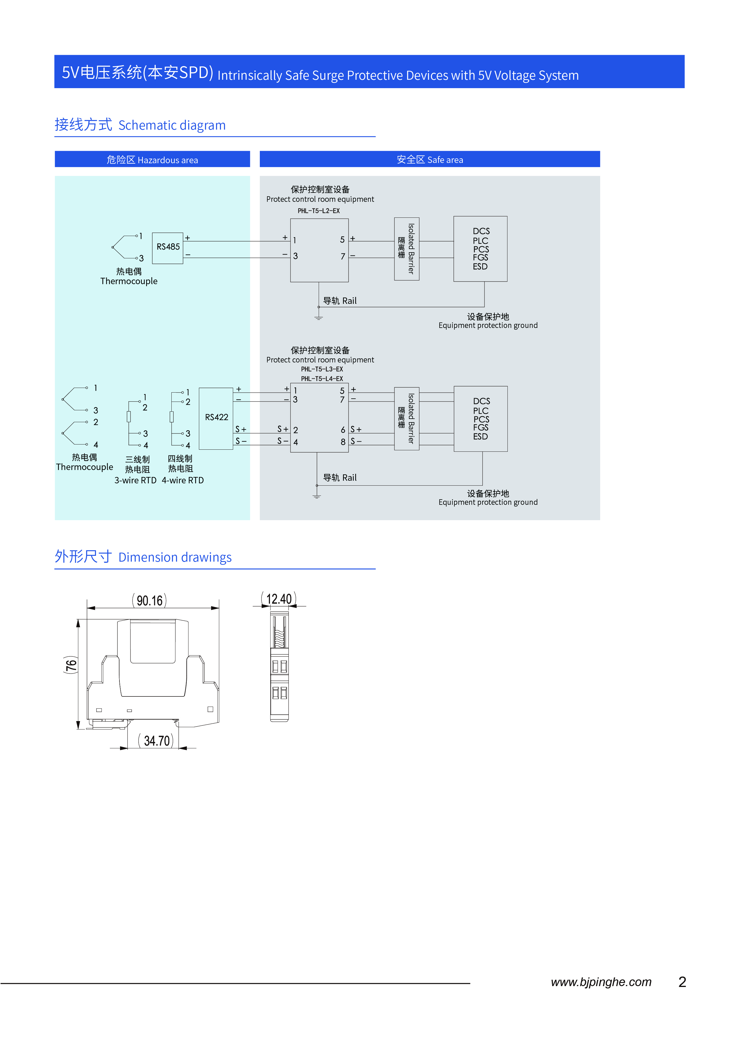 Suitable for TC, RTD, CAN, RS485, RS422 and other floating circuit protection signals;