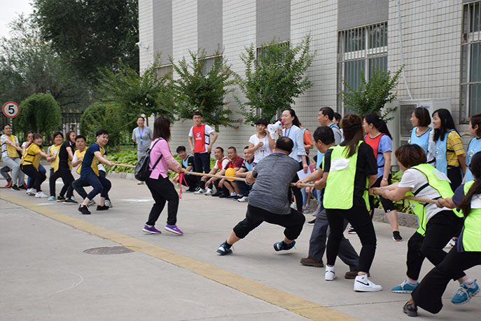 此次比賽分別是拔河比賽、踢毽子、跳繩、五毛一塊、面面相聚、搭橋過河、勤勞的小蜜蜂等項目?;顒幼钕乳_始的熱身比賽拔河,在比賽中,每隊隊員使出了渾身解數(shù),全力以赴也要分個高下。哪怕拼命向后的身體被對手逐漸拽向前方,哪怕宣告失敗的哨聲有些尖銳,哪怕失落的情緒讓人惆悵,但新的比賽開始,場上場下又都瞬間充滿了斗志,“加油,加油!”的呼聲震耳欲聾。