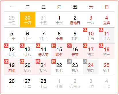 根據(jù)國家放假安排,2018年春節(jié)北京平和放假安排如下: